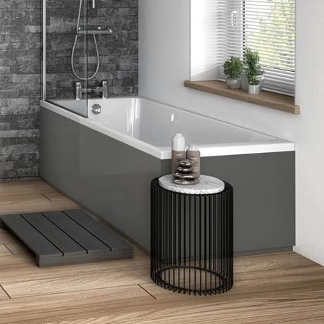 A 700mm Gloss Grey End Bath Panel and Plinth for straight baths, designed to match the Apollo2 Gloss Grey Furniture Range.