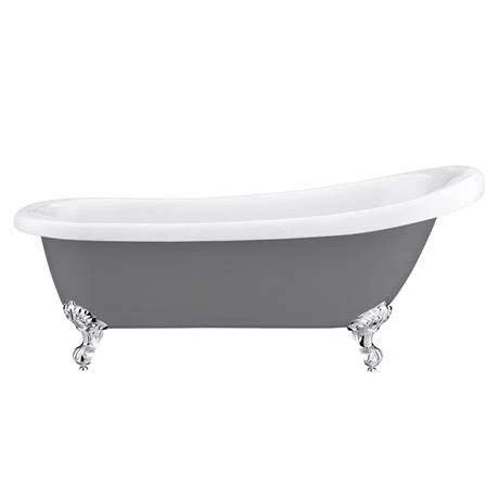 Made with double skinned acrylic with a superb white and Grey surface finish. Slipper bath has no tap holes and a continuous rolled rim.