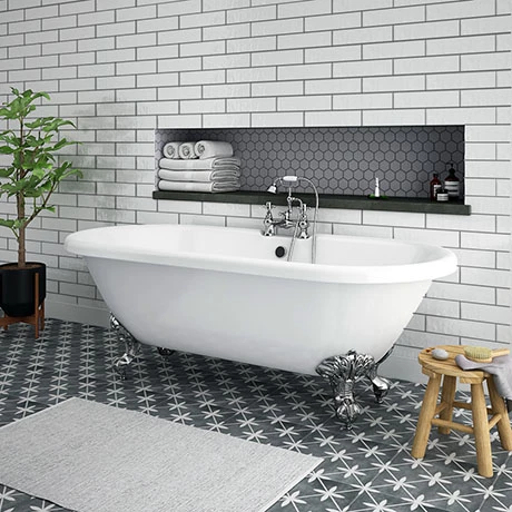 If you’re looking for a feature piece for your bathroom, consider the Duke Double Ended Roll Top Bath. This stunning traditional freestanding bath is a roomy 1695mm long with a white gloss finish that’s easy to wipe clean for long lasting sparkle. It comes with four chrome legs in a classic ball and claw style with intricate detailing – they’re adjustable as well so you don’t need to worry if your floor’s uneven. This double ended roll top bath can be paired with either freestanding or mounted taps, so you can choose the style that suits you.