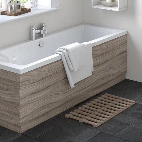 A 1700mm Textured Woodgrain Front Bath Panel and Plinth from Hudson Reed for straight baths, designed to match Hudson Reed’s Driftwood Fitted Furniture Range.