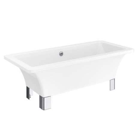 The 1690mm Milan modern square roll bath with chrome leg set, enjoy the feeling of luxury with this classical free standing bath. It’s stylish clean lines make this bath the perfect centrepiece for any bathroom. The bath is mounted upon modern square chrome feet to complete a breathtaking appearance. Made with double skinned acrylic with a superb surface finish. Supplied with no pre-drilled tap holes.
