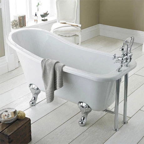 A luxury slipper free-standing bath with stylish chrome feet, suitable as a centre piece for any bathroom design. The Kensington has been carefully designed and manufactured to the highest standards, you can be sure that choosing this classical free standing slipper style roll top bath you will complete the bathroom of your dreams, and leave you happy for many years to come.
