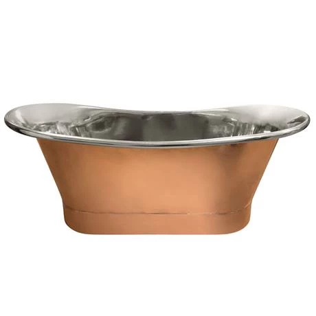 This 1700mm long Trafalgar Copper Double Ended Slipper Roll Top Bath Tub is the ultimate choice for luxury bathing. Polished high gauge copper gives a striking bronze finish that contrasts beautifully with the silvery nickel interior โ this also provides resistance. The handcrafted bath provides a sublime focal point in both traditional and contemporary bathrooms and can be used with wall mounted or floor mounted freestanding bath taps. The roll top slipper bath shape means that both ends of this copper and nickel bath are equally as comfortable to lean against.